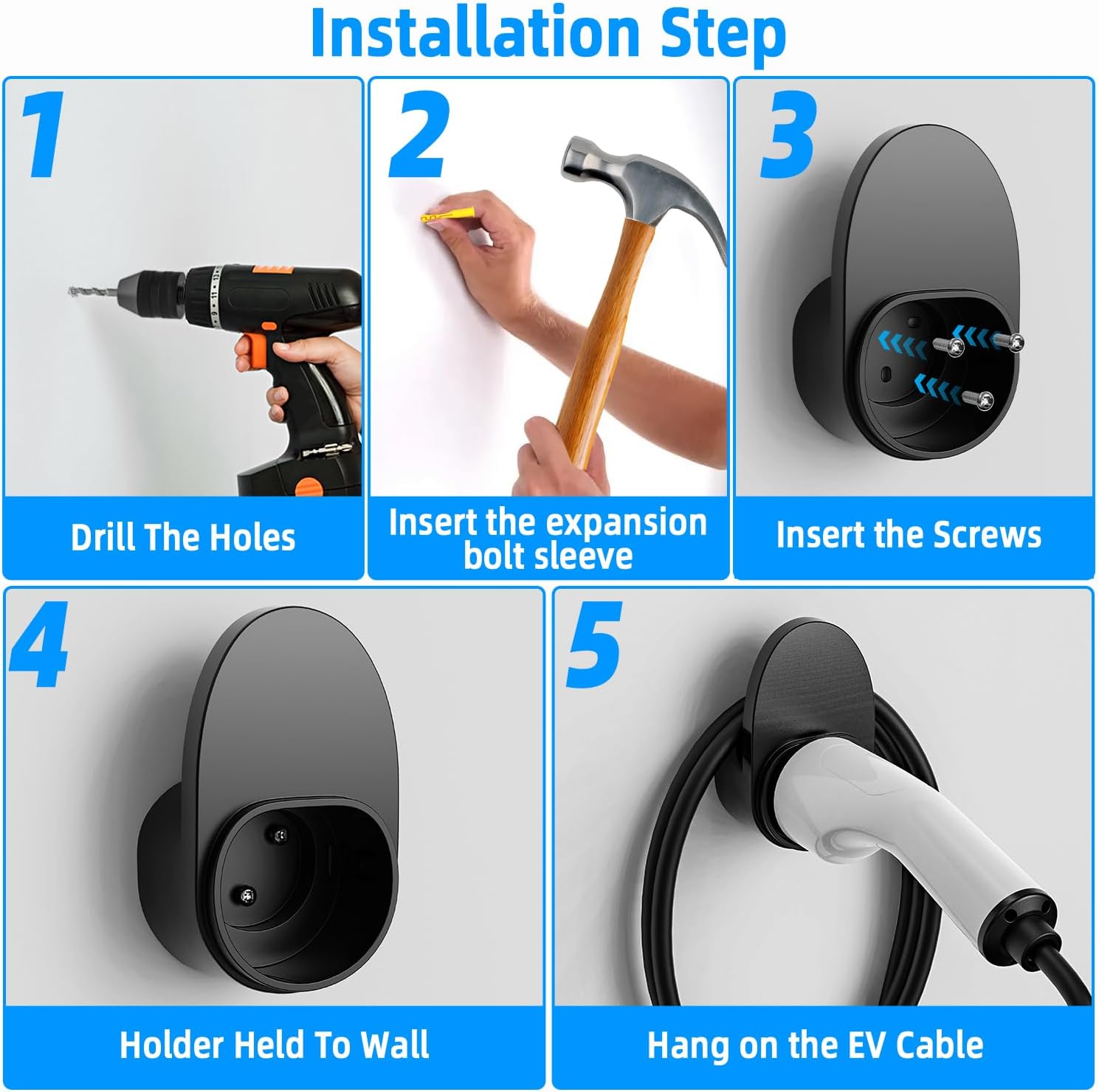 Halter für Ladestecker Typ 2, robuste und langlebige Kabelhalterung für die Wandmontage, Kabelhalterung für die Wanddose, Steckerhalterung Typ 2, kompatibel mit allen Ladekabeln Typ 2