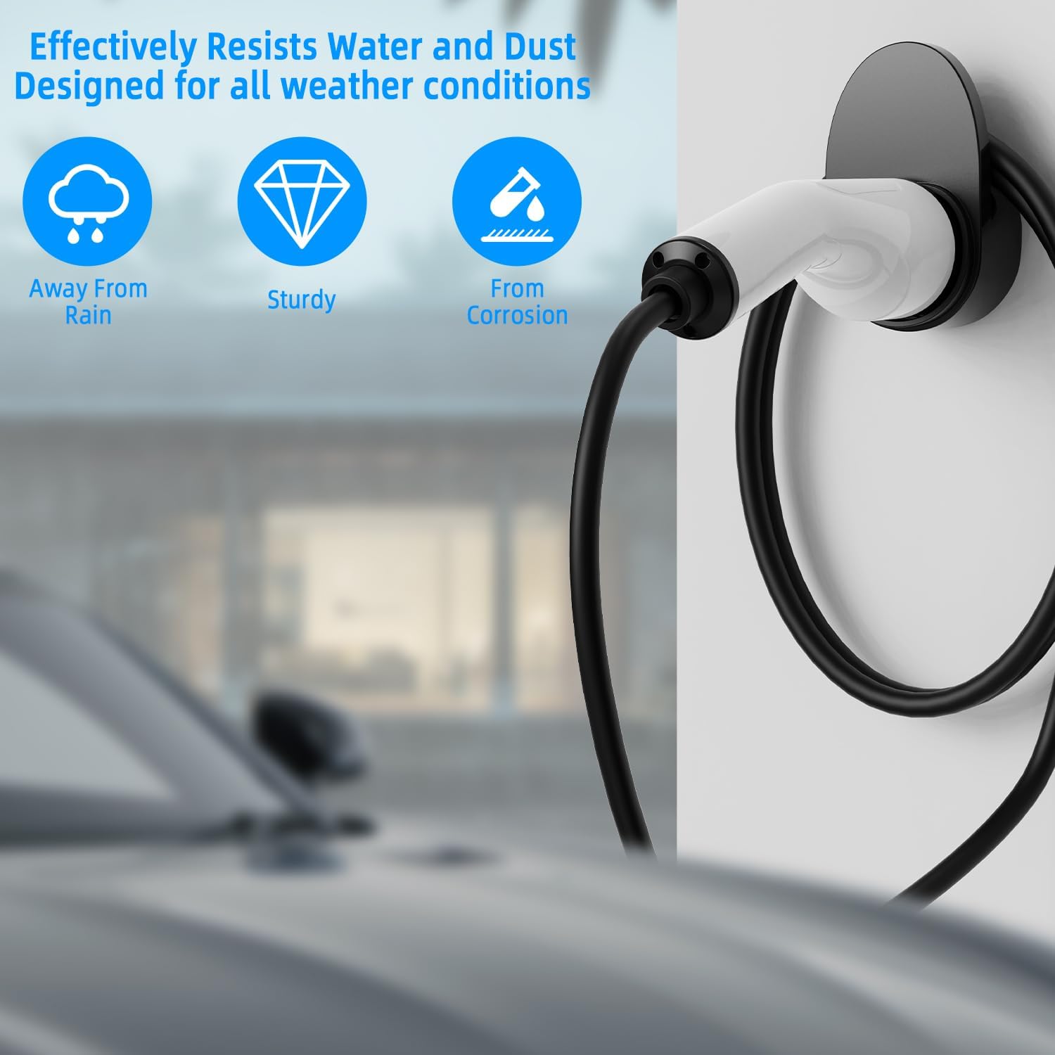 Der Ladeleitungshalter besteht aus hochwertigem ABS-Material, das eine hervorragende Verarbeitungsqualität aufweist. Er bietet ausgezeichnete Wärmeableitung und Erdungsleistung und garantiert eine lange Lebensdauer. Mit seiner Wetterfestigkeit eignet sich der Halter sowohl für den Innen- als auch Außeneinsatz.